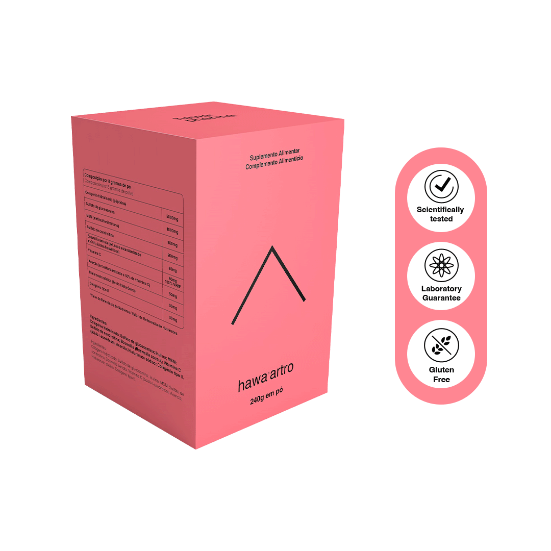 240gr pó - Entre as substâncias presentes nesta fórmula, existem variadas sinergias positivas, o que se revelou muito favorável na elaboração da formulação, potenciando a ação individual de cada uma das substâncias isoladas, tendo aqui cabimento o princípio, um mais um igual a três, quatro, cinco, etc...não correspondendo assim o efeito global a um mero somatório das partes. Hawa artro incorpora todos os nutrientes necessários para o cuidado e saúde das articulações, tirando partido da sua associação e ação sinérgica, com efeitos benéficos adicionais. Recomendações: Transtornos osteoarticulares.