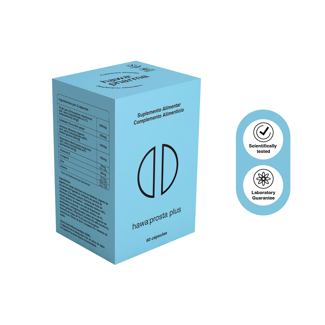 60 Cápsulas - A próstata é uma glândula exclusivamente masculina situada na pélvis, com uma dimensão semelhante à de uma noz. Desempenha um papel de suporte no sistema reprodutor masculino. Devido à sua localização anatómica, um aumento de tamanho provocado por patologia benigna ou maligna, pode provocar uma diminuição progressiva do calibre da uretra e condicionar uma obstrução parcial ou total do fluxo de urina. Hawa prosta plus é um nutracêutico que contém algumas das plantas e elementos mais estudados para patologias da próstata, que determinam a sua eficácia e segurança. Recomendações: Saúde da próstata, transtornos do trato urinário.