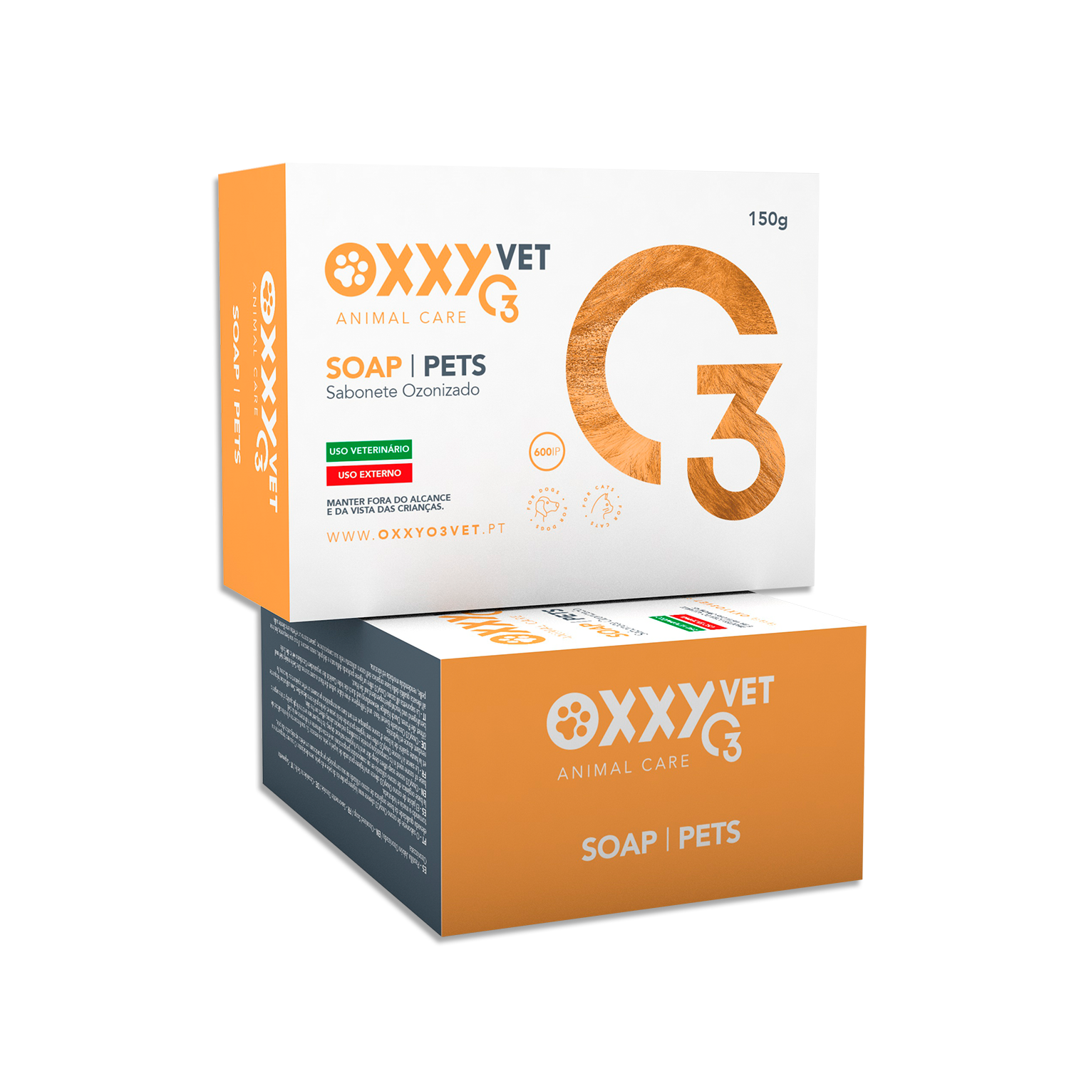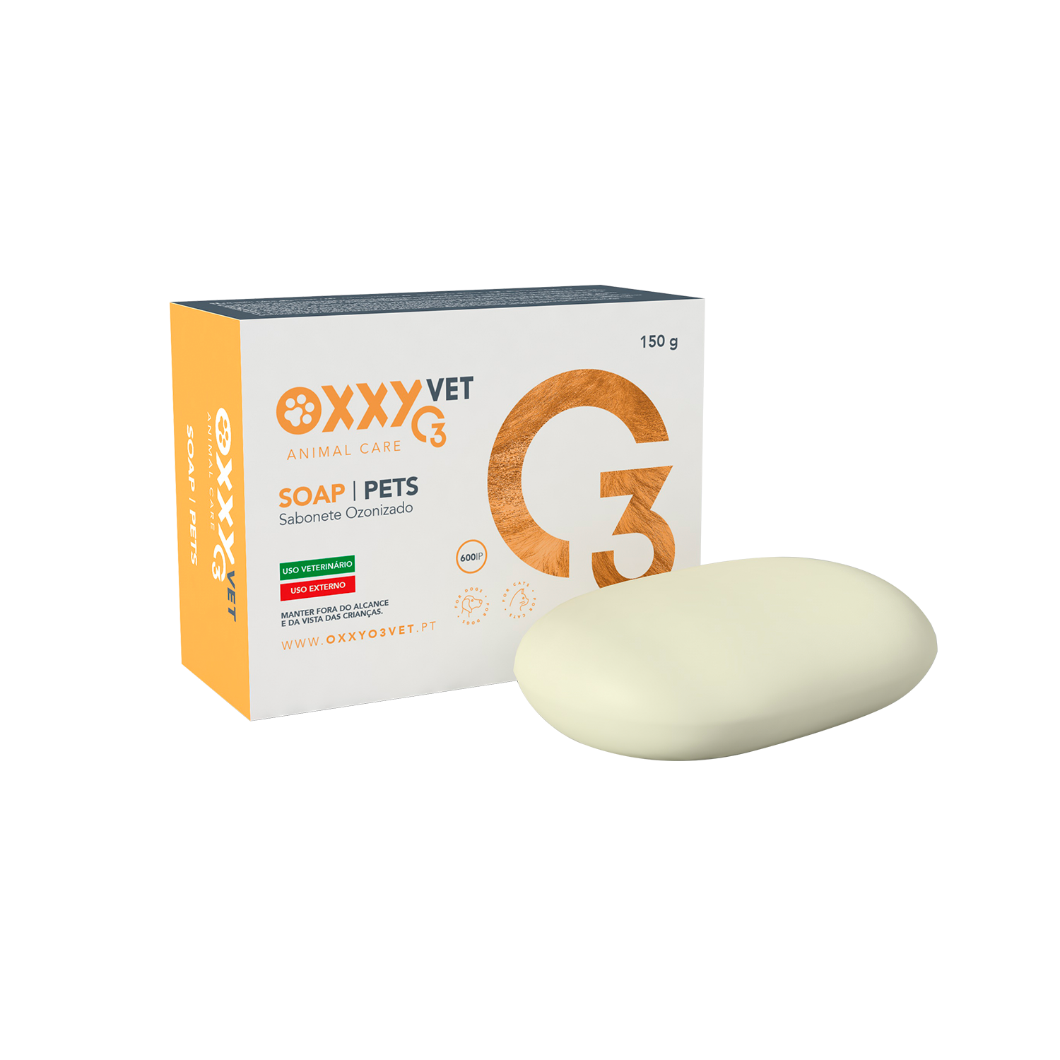Caixa 100 gr - OxxyO3 VET Soap Pets Higiene e desinfeção profunda da pele de cães e gatos.